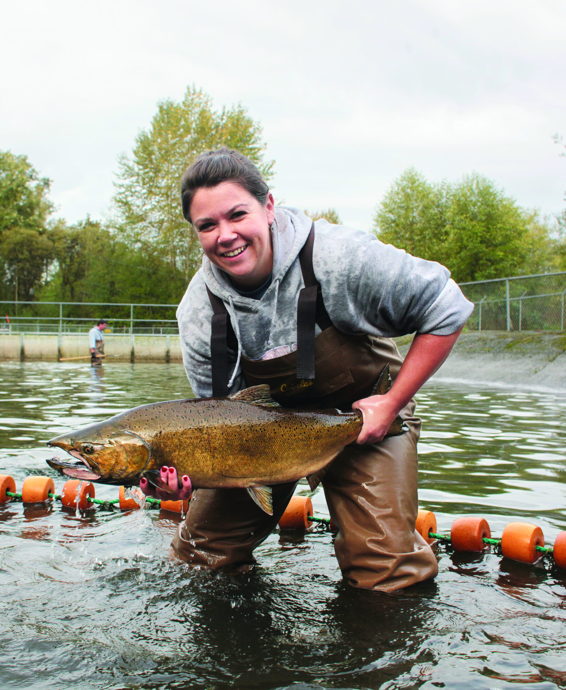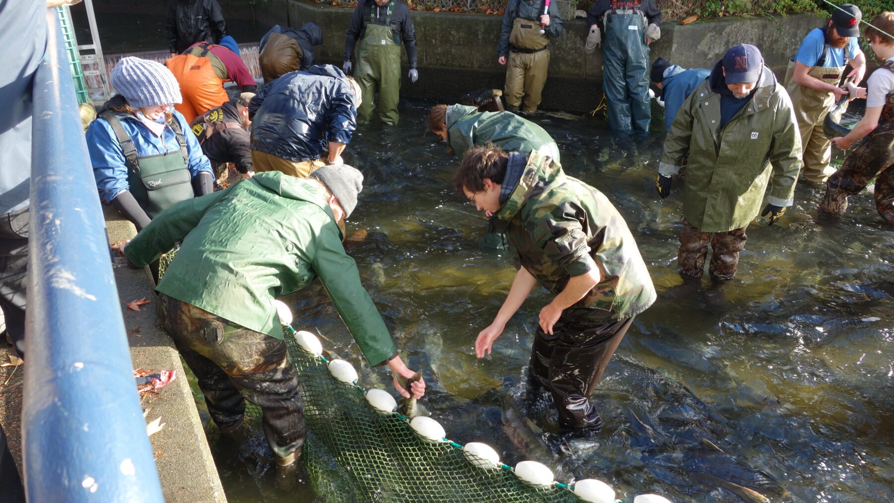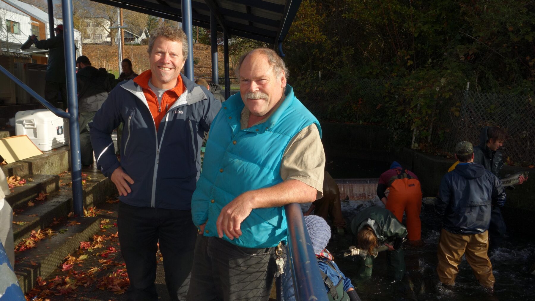 Bellingham Technical College operates a hatchery on Whatcom Creek in downtown Bellingham's Maritime Heritage Park through its Fisheries and Aquaculture Sciences program at the Perry Center for Fisheries & Aquaculture. The program is the only one of its kind in the state, offering students a combination of laboratory work and hands-on learning at the hatchery. With an 81 percent placement rate, program graduates find careers as hatchery specialists, fish and shellfish culturists, and water quality technicians. Fisheries and Aquaculture instructors Earl Steele and Ryan Vasak manage the hatchery as they teach their students. After harvesting the returning salmon for eggs, the fish are donated to SeaShare for hunger relief. This year, BTC donated about 98,000 pounds of fish, though processing will decrease the number of pounds received by food banks. With so many people using food banks to feed help feed their families, it's work that Steele is proud to do, and it's a lesson in giving that he believes is essential for students.