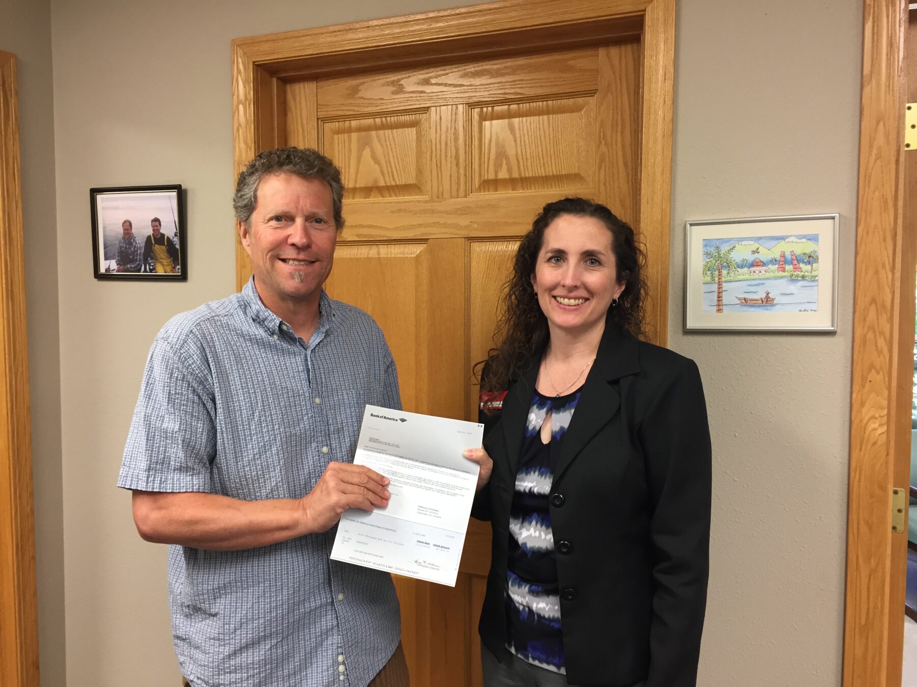 Claire Diaz, Manager, Assistant Vice President , Bank of America, stopped by our office today and presented Jim with a grant check for $5,000 on behalf of the Bank of America Charitable Foundation, Inc. The Bank of America Charitable Foundation, Inc. invests in local communities all across America in order to create positive change and improve the quality of life.