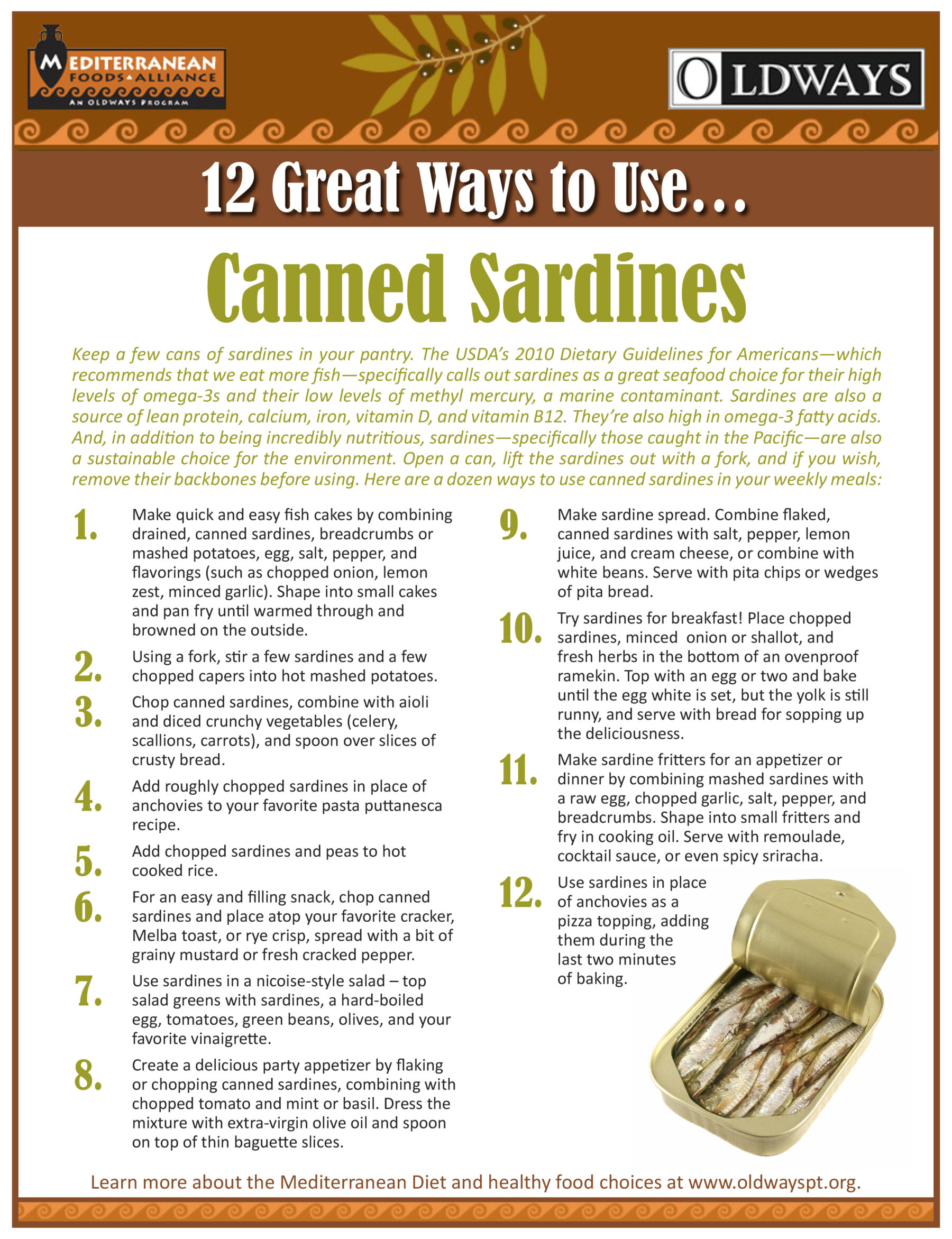 If you've never had sardines, you're in for a treat. It may seem a little daunting at first, but here are 12 ways for you to add some healthy omega-3's to your diet. For more information and recipes on eating nutritious seafood, visit Oldways Preservation Trust.
