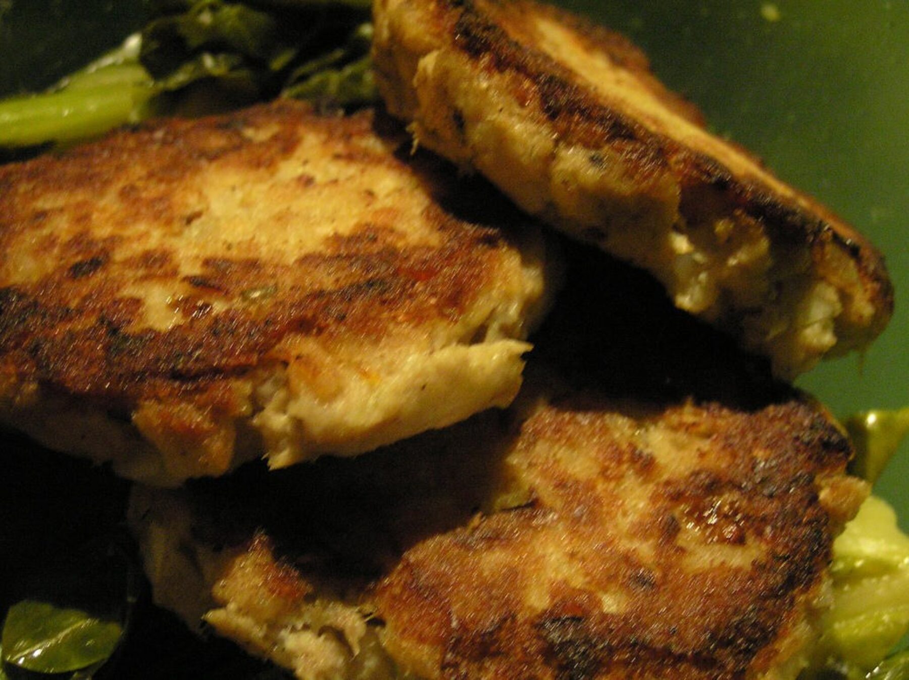 Greg suggests making patties from canned tuna, mashed potatoes, parsley, grated raw onion, chopped drained capers, salt and pepper."