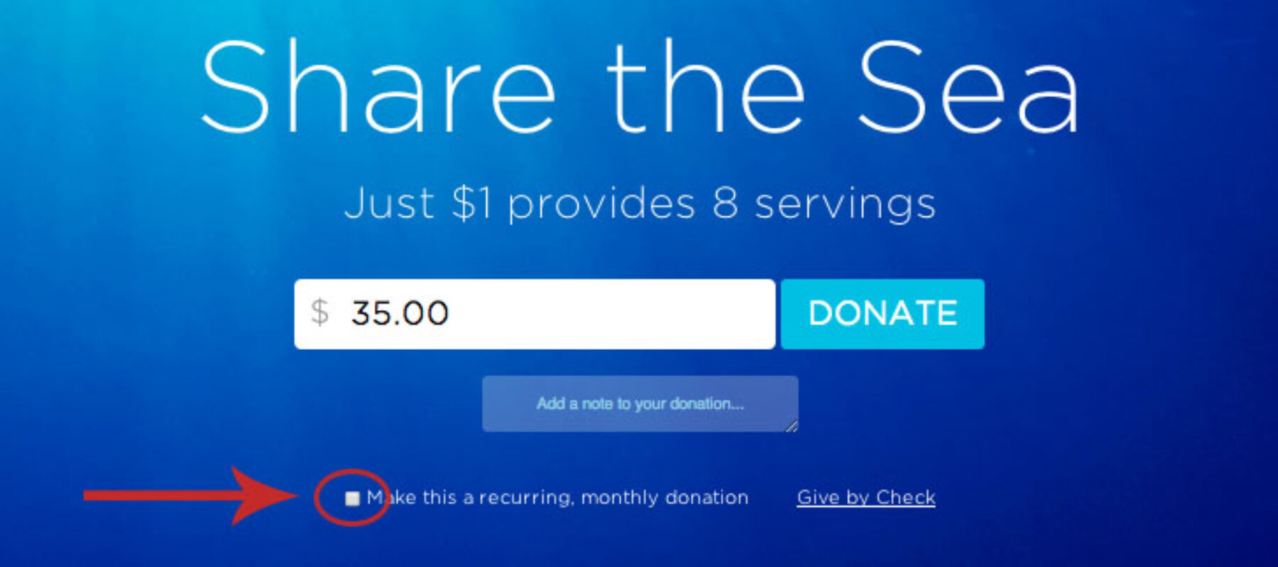 For this new year of 2015, why not pledge to SeaShare on a monthly basis? This is an effortless, yet effective, resolution where each dollar you provide will give eight seafood servings to people who seek assistance at our nation's food banks. It's an easy way to help SeaShare continue its work.