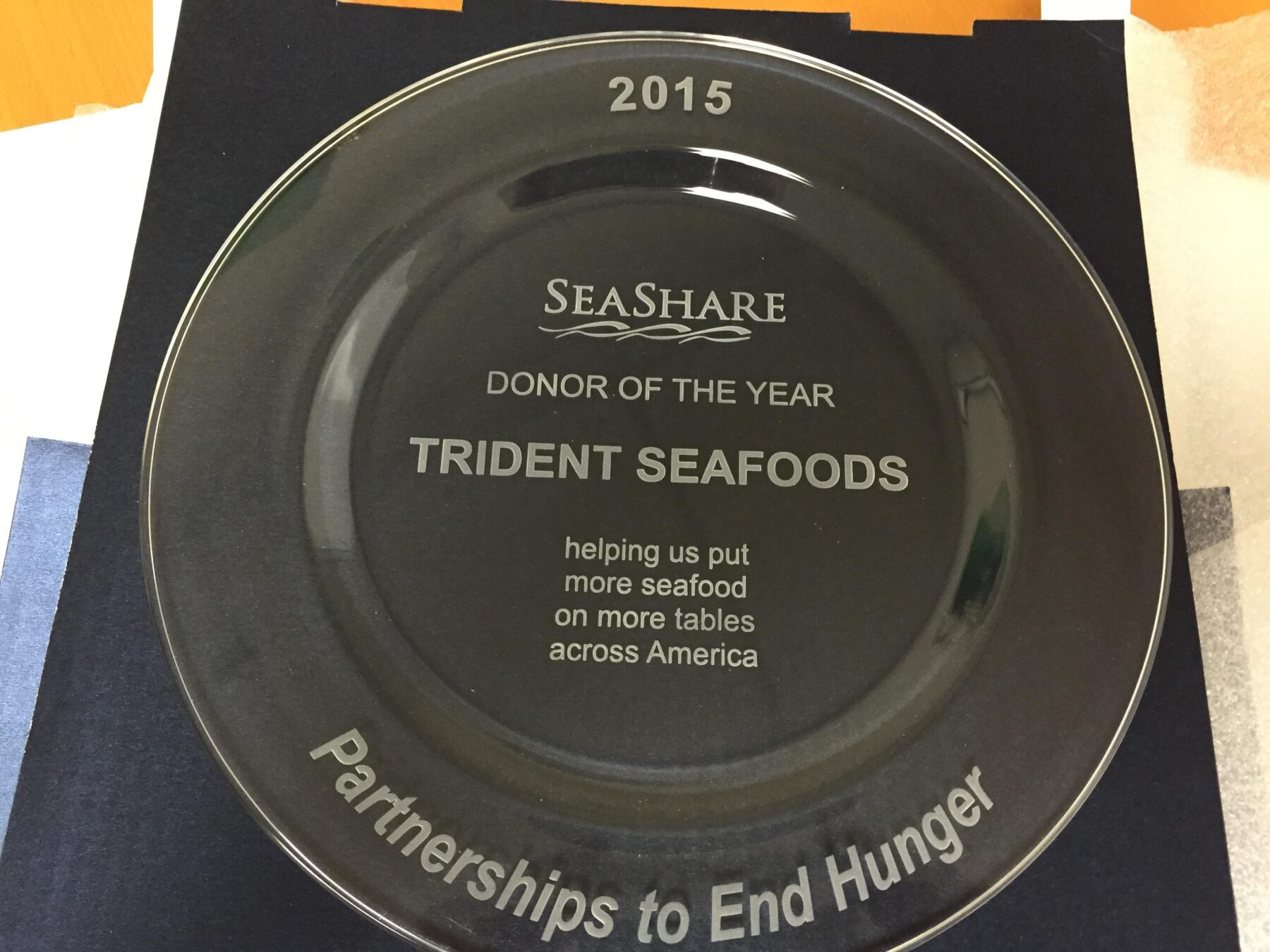 SeaShare presented Trident Seafoods with its 2015 NFI (National Fisheries Institute) Donor of the Year award on Monday at the annual Alaska Go Wild! reception at the Seaport Hotel.