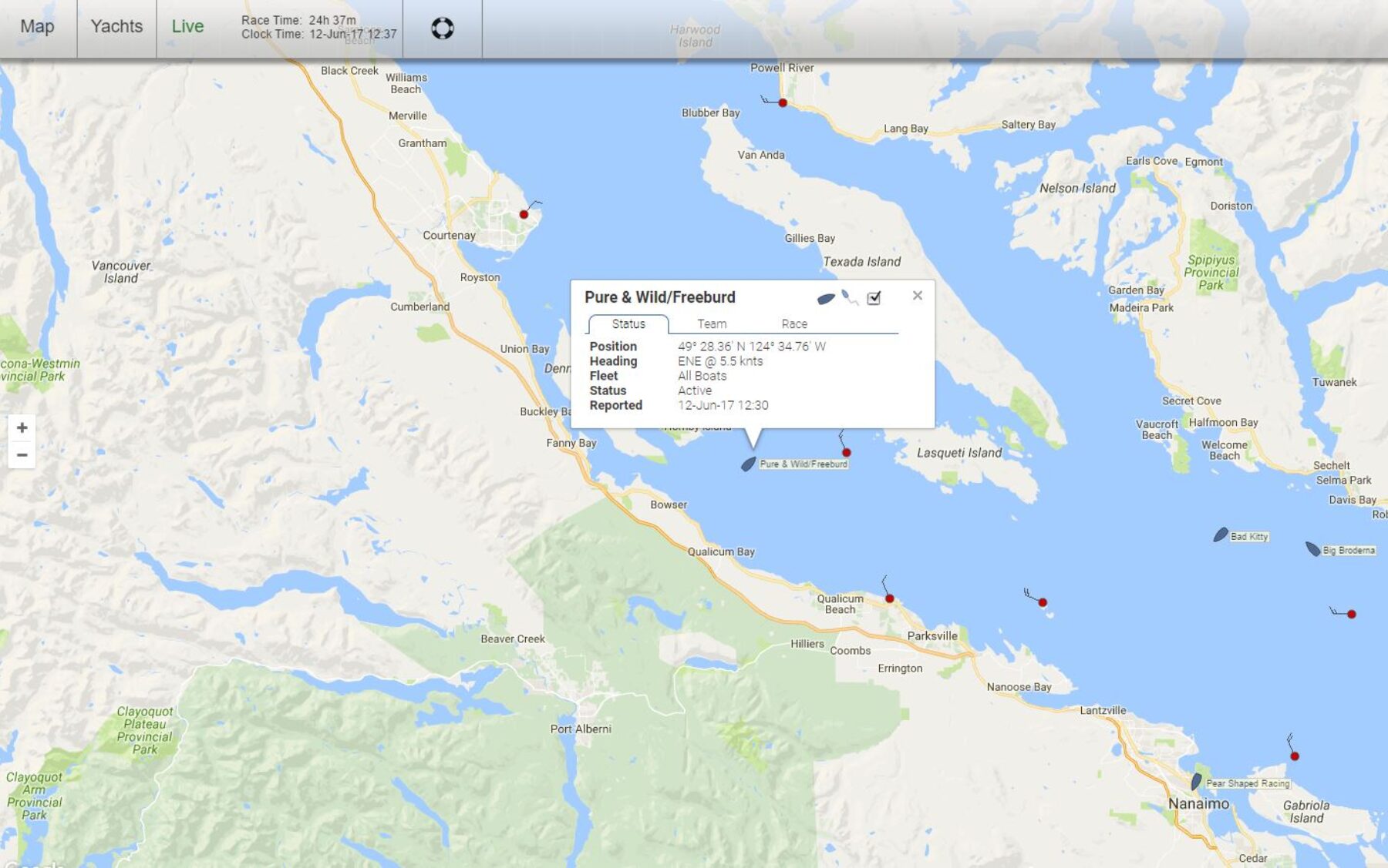 Team Pure and Wild is currently in first place in the Race to Alaska! You can track them in real time here: http://tracker.r2ak.com/